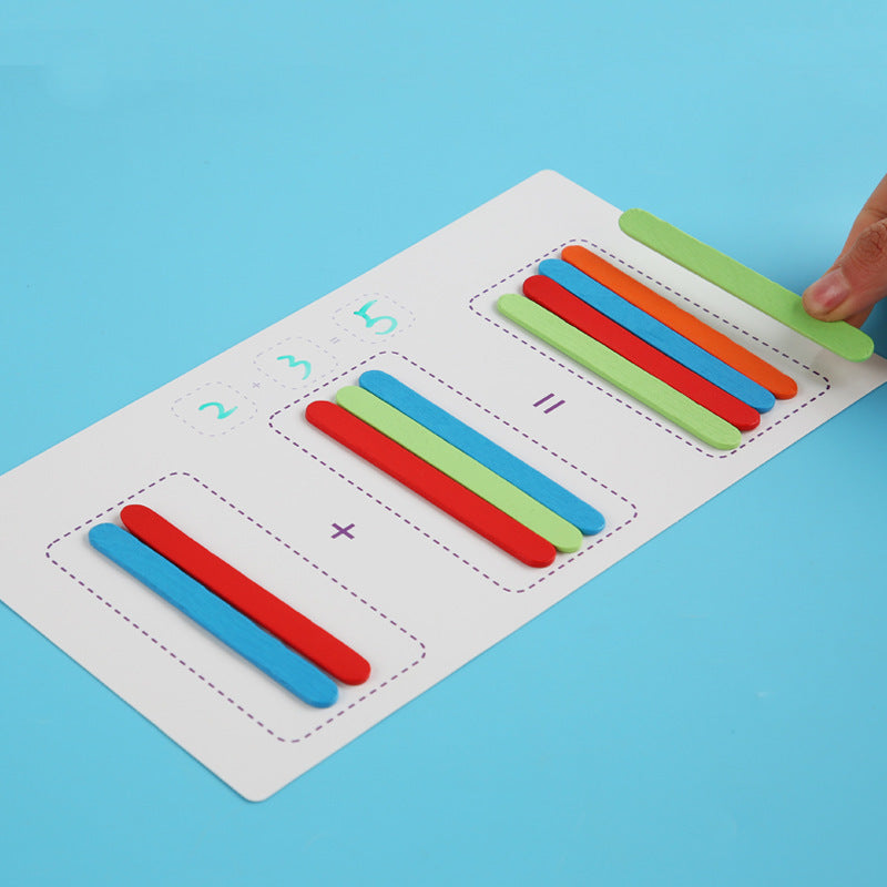 This wooden math toy set includes building counting sticks that help children develop their arithmetic skills through hands-on play. Packed in a color box, it’s designed to promote learning in a fun and interactive way.