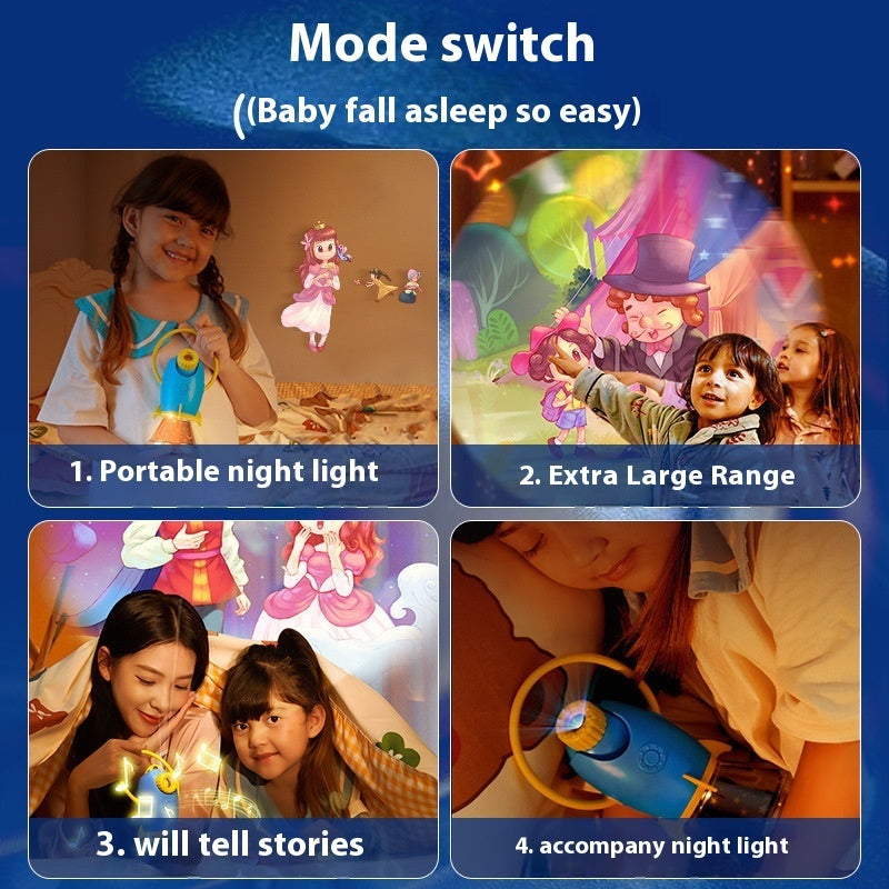 This infant projection lamp features a rocket design with modern simplicity, creating an engaging visual experience for early learning. It includes multiple projection plates with colorful images to stimulate curiosity, imagination, and visual development.